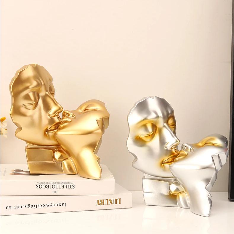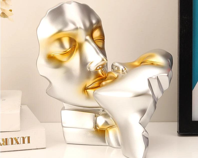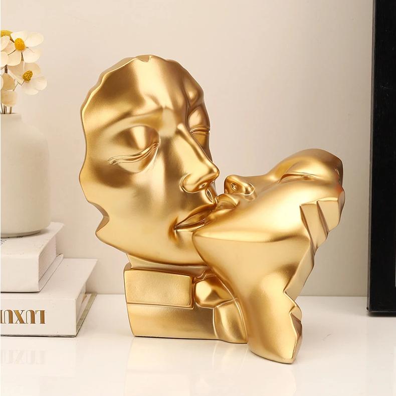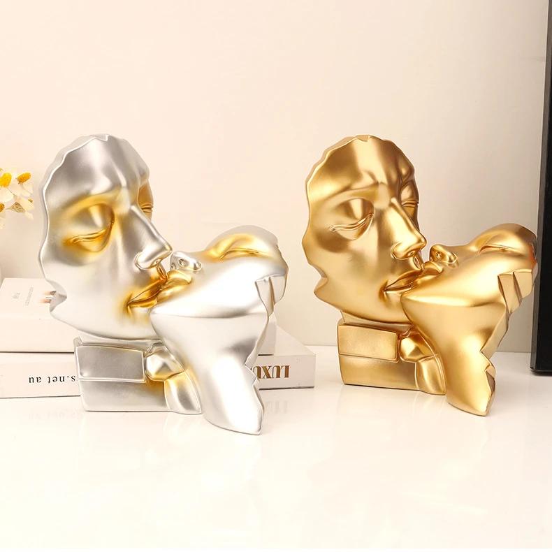 Kissing Couple Human Face Resin Sculpture Decor $57.00